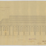 Opschrift: Ontwerp van vergrooting der parochiale kerk te Hoeselt Omschrijving plan: langsdoorsnede Datum KCML: 18/01/1896 Archiefnummer: L0501