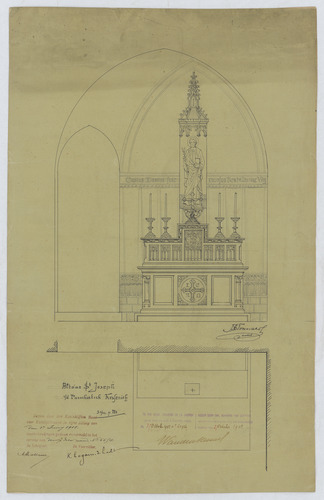 Opschrift: Altaar St. Joseph Omschrijving plan: ontwerp altaar Datum KCML: 1-6-1901 Archiefnummer: L0541