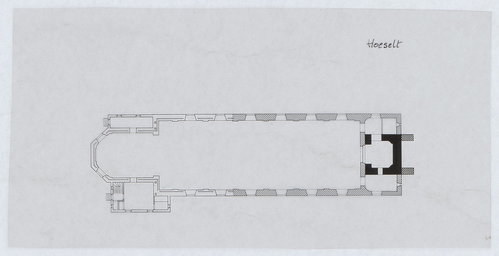 Opschrift: Hoeselt Omschrijving plan: plattegrond niveau 0 Datum KCML: deze informatie wordt niet vermeld op het archiefstuk Archiefnummer: L0503
