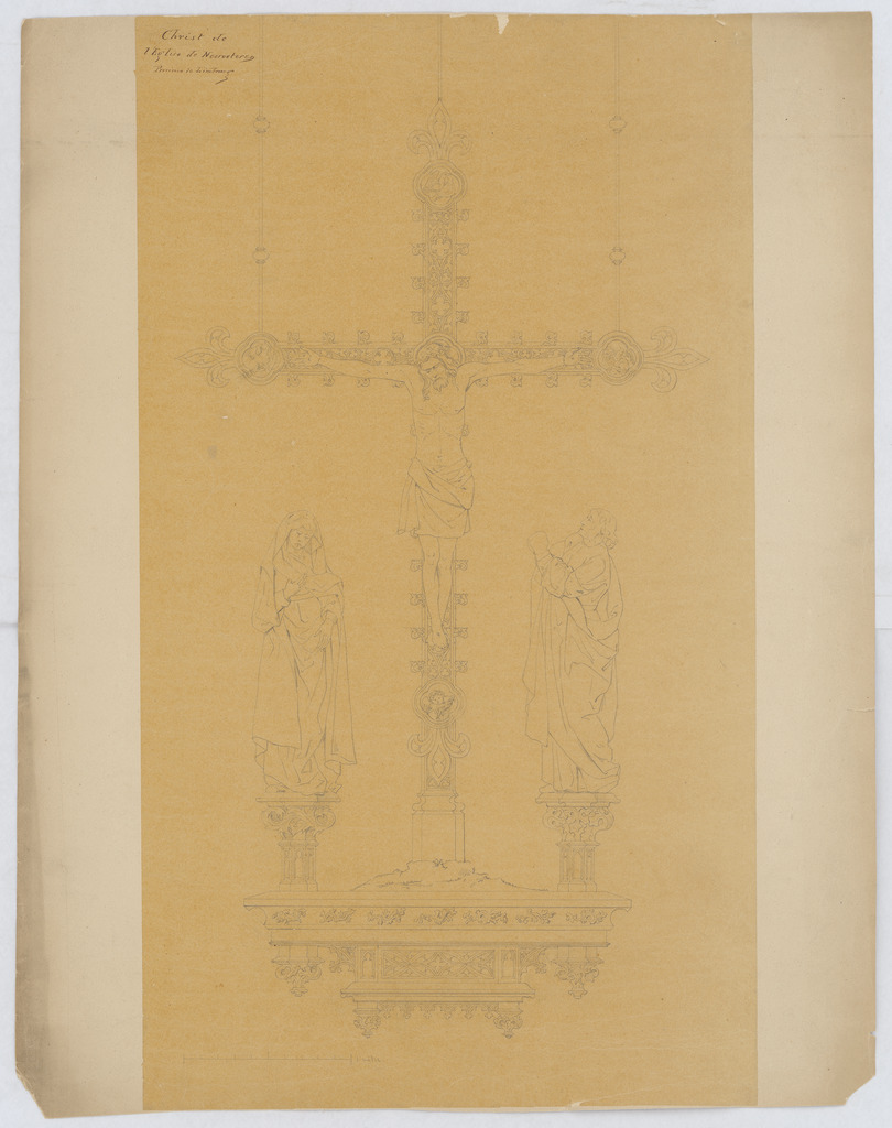 Opschrift: Christ de l'église de Neeroeteren Omschrijving plan: ontwerp triomfkruis met Maria en Johannes Datum KCML: deze informatie wordt niet vermeld op het archiefstuk Archiefnummer: L0662