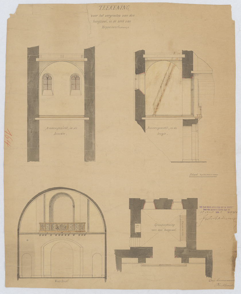 Opschrift: Teekening voor het vergrooten van den hoogzaal Omschrijving plan: ontwerp hoogzaal Datum KCML: deze informatie wordt niet vermeld op het archiefstuk Archiefnummer: L0654