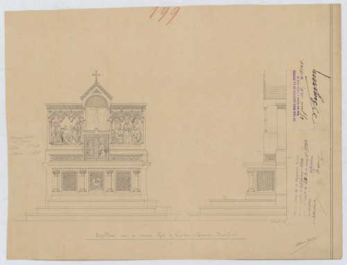 Opschrift: Hoogaltaar voor de nieuwe Kerk te Cothem (gemeente Boorsheim) Omschrijving plan: ontwerp hoogaltaar Datum KCML: 17/02/1894 Archiefnummer: L0694