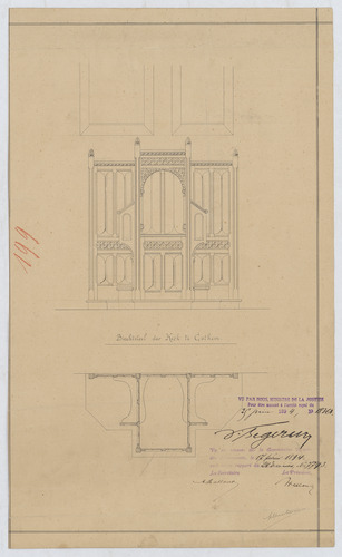 Opschrift: Biechtstoel der Kerk te Cothem Omschrijving plan: ontwerp biechtstoel, grondplan Datum KCML: 17/02/1894 Archiefnummer: L0692