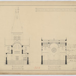 Opschrift: Ontwerp voor het bouwen eener nieuwe kerk te Cothem (gemeente Boorsheim) Omschrijving plan: dwarsdoorsneden CD, EF Datum KCML: 07/03/1891 Archiefnummer: L0697