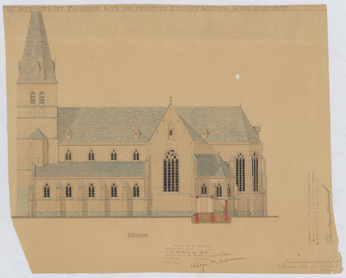 Opschrift: (Ontwerp voor) het vergrooten der parochiale kerk van Opoeteren Omschrijving plan: opstand zijgevel Datum KCML: 26-9-1904 Archiefnummer: L0681