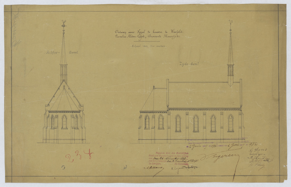 Opschrift: Ontwerp eener kapel te bouwen te Würfeld Omschrijving plan: ontwerp zijaltaar Datum KCML: 26/11/1898 Archiefnummer: L0684