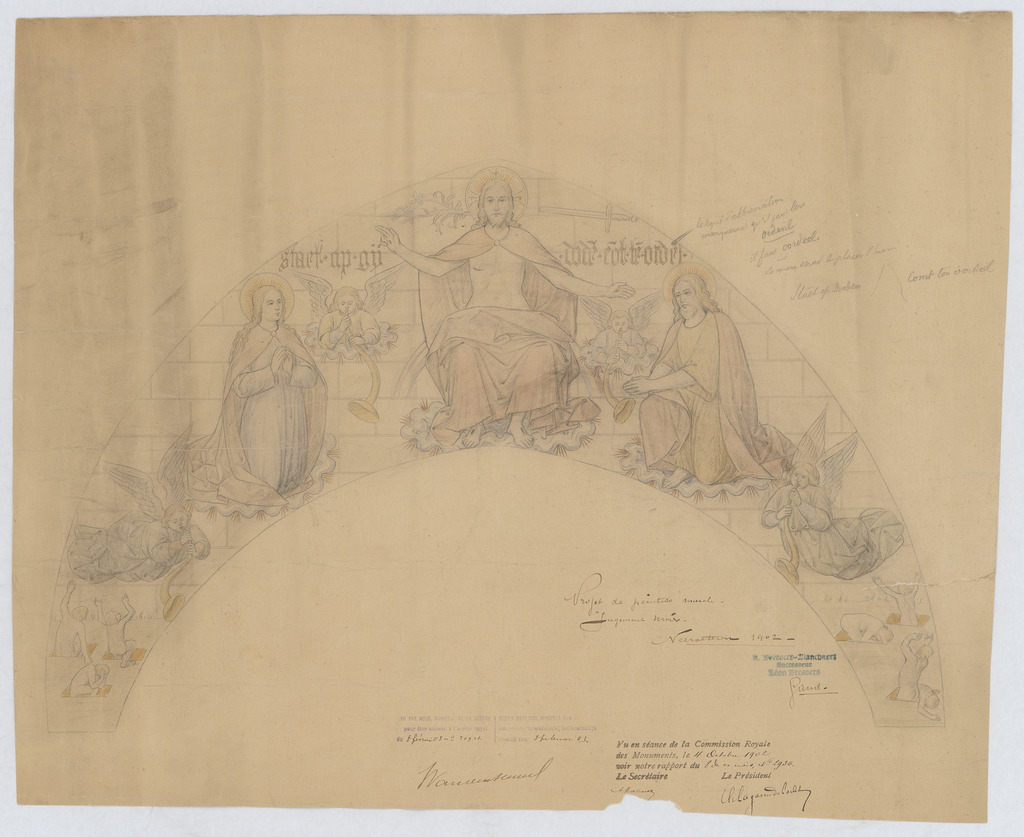Opschrift: Projet de peinture mural - jugement dernier Omschrijving plan: ontwerp muurschildering Datum KCML: 4-10-1902 Archiefnummer: L0658
