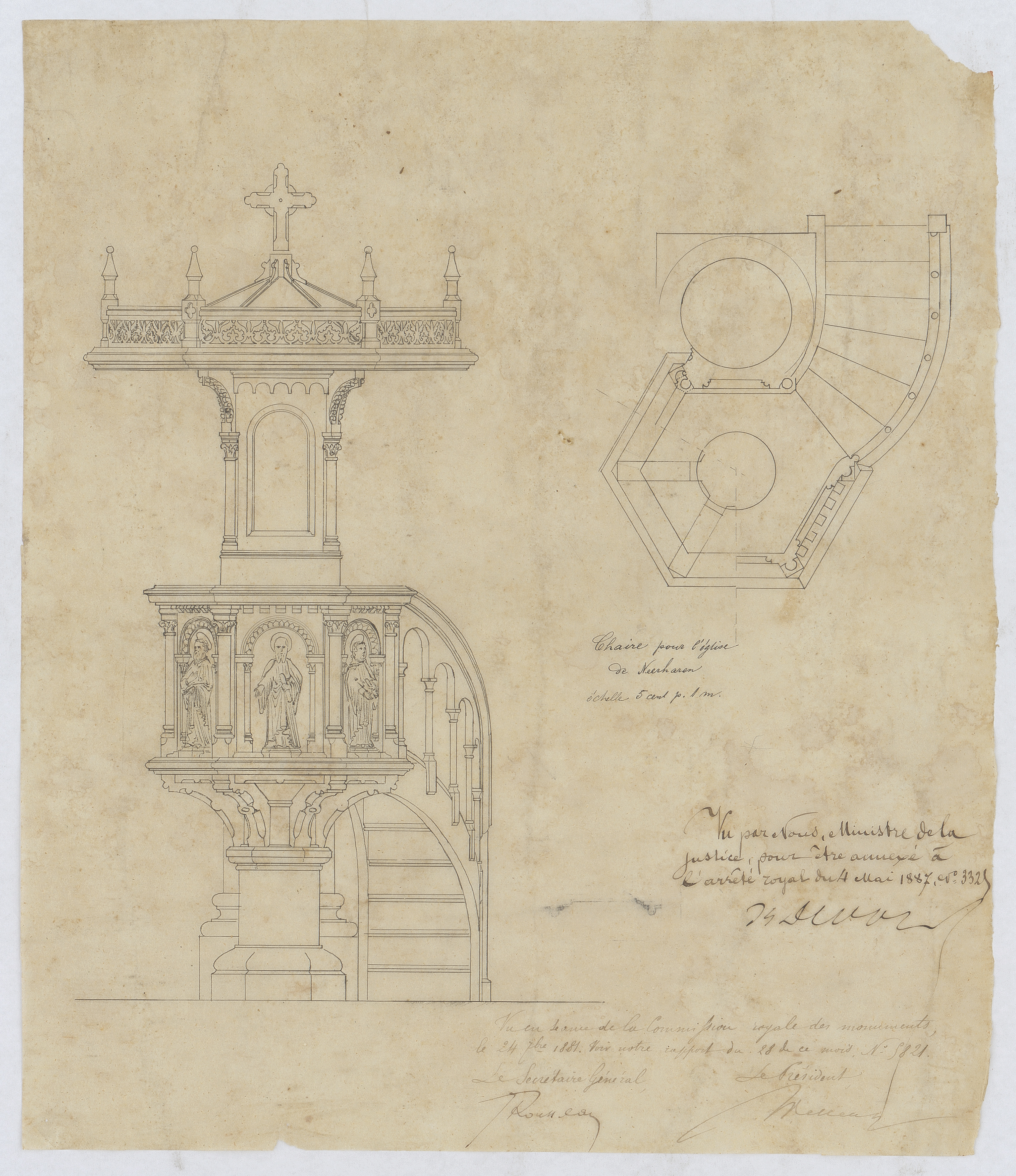 Opschrift: Chaire pour l'église de Neerhaeren Omschrijving plan: ontwerp spreekgestoelte Datum KCML: 24/09/1881 Archiefnummer: L0601