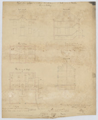 Opschrift: Projet d'un presbytère façade principale, coupe AB; plan de l'étage; coupe CD; plan du rez de chaussée Omschrijving plan: opstand voorgevel, doorsneden, plattegrond niveau 0, plattegrond niveau, 1 Datum KCML: 08/04/1865 Archiefnummer: L0703