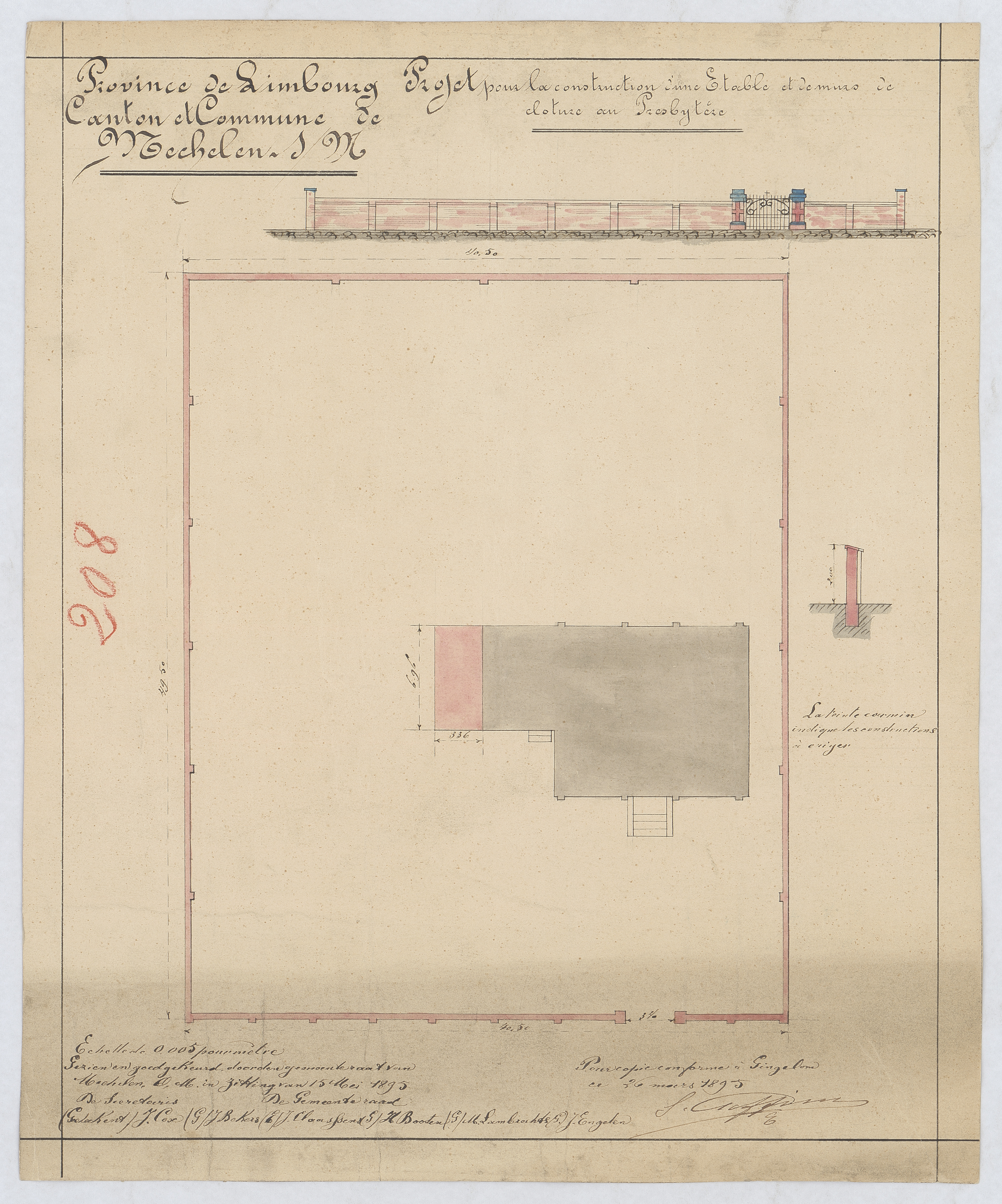 Opschrift: Projet pour la construction d'une étable et de murs de clôture au presbytère Omschrijving plan: ontwerp omheiningsmuur Datum KCML: deze informatie wordt niet vermeld op het archiefstuk Archiefnummer: L0719