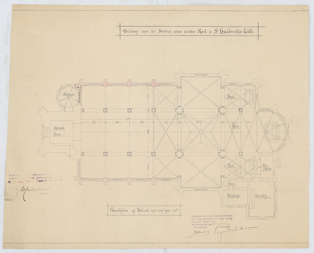 Opschrift: Ontwerp voor het bouwen eener nieuwe kerk te St Huibrechts-Lille Omschrijving plan: opstand N-gevel Datum KCML: 30-3-1912 Archiefnummer: L0771