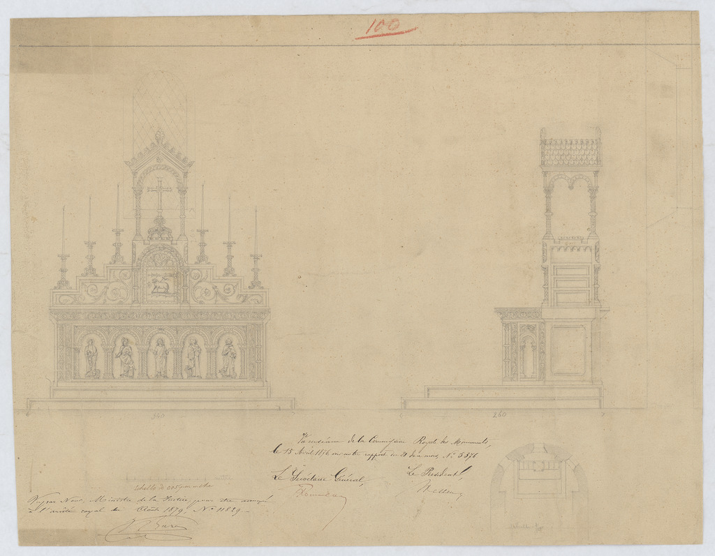 Opschrift: deze informatie wordt niet vermeld op het archiefstuk Omschrijving plan: ontwerp hoogaltaar Datum KCML: 15/04/1876 Archiefnummer: L0704