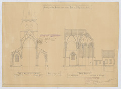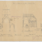 Opschrift: Ontwerp voor het bouwen eener nieuwe kerk te St Huibrechts-Lille Omschrijving plan: dwarsdoorsnede naar de toren en naar het koor, langsdoorsnede van koor naar sacristij Datum KCML: 30-3-1912 Archiefnummer: L0768