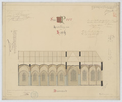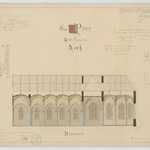 Opschrift: Herstellingen van de kerk Stad Peer, doorsneede Omschrijving plan: langsdoorsnede Datum KCML: 09/07/1885 Archiefnummer: L0815
