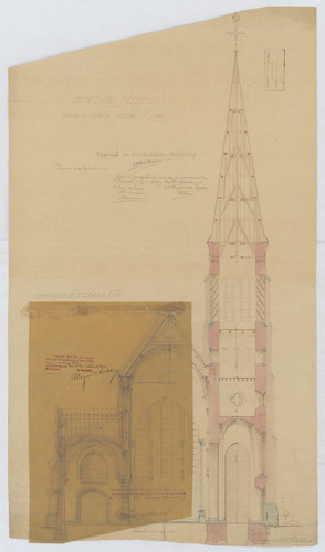 Opschrift: Gemeente Riempst bouwen eener nieuwe kerk doorsnede CD Omschrijving plan: opstand N-gevel Datum KCML: 23-7-1906 Archiefnummer: L0843