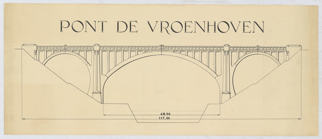 Opschrift: Pont de Vroenhoven Omschrijving plan: ontwerp brug Datum KCML: deze informatie wordt niet vermeld op het archiefstuk Archiefnummer: L0867