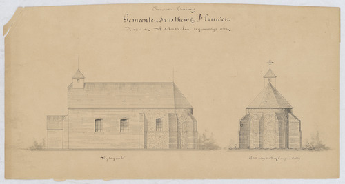 Opschrift: Kapel H. Berthélia tegenwoordigen staat Omschrijving plan: opstand N-gevel, opstand O-gevel Datum KCML: deze informatie wordt niet vermeld op het archiefstuk Archiefnummer: L0907