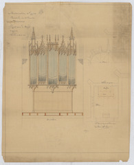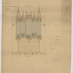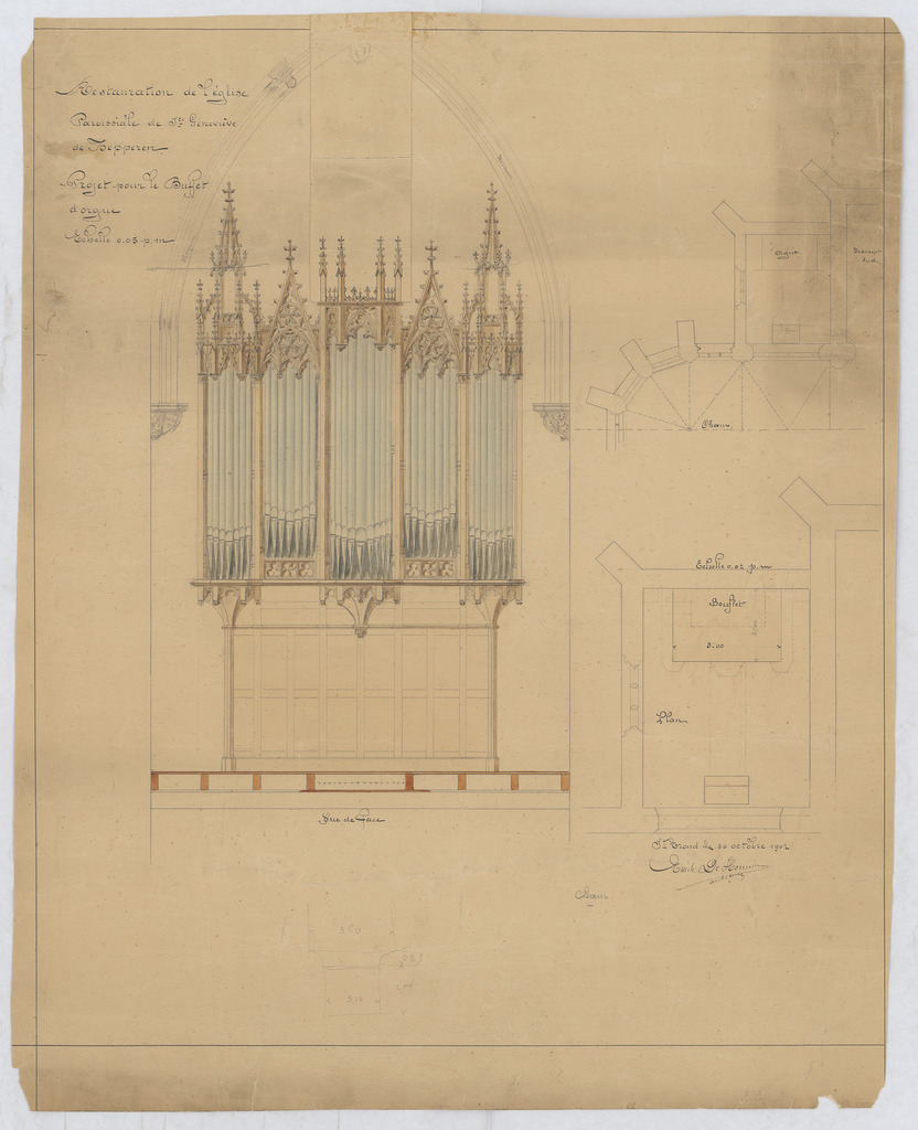 Opschrift: Restauration d l'église paroissiale de St. Geneviève de Zepperen; Projet pour le buffet d'orgue Omschrijving plan: ontwerp orgelkast, plattegrond Datum KCML: deze informatie wordt niet vermeld op het archiefstuk Archiefnummer: L0980