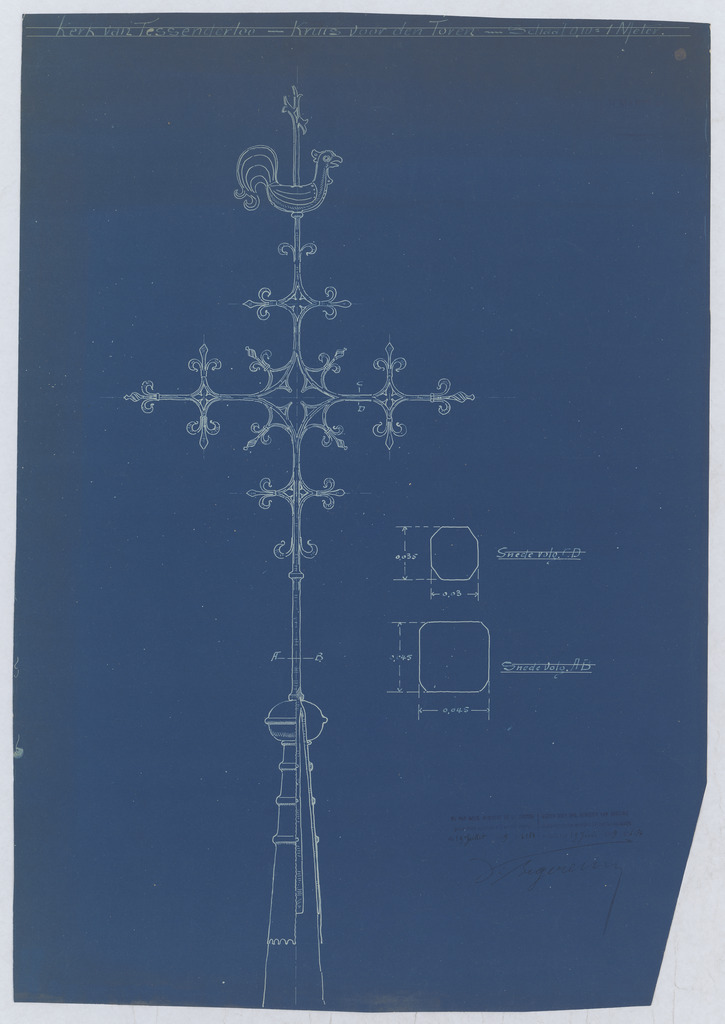 Opschrift: Kerk van Tessenderloo - Kruis voor den toren Omschrijving plan: ontwerp torenkruis Datum KCML: deze informatie wordt niet vermeld op het archiefstuk Archiefnummer: L0997