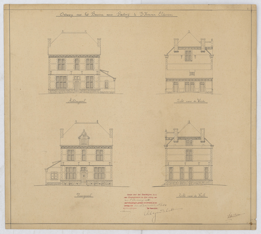 Opschrift: Ontwerp voor het bouwen eener nieuwe pastorij te 's Heeren Elderen Omschrijving plan: opstanden 4 zijden Datum KCML: 8-1-1910 Archiefnummer: L1025