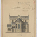 Opschrift: Projet pour la reconstruction de l'église St Jean à Tongres Omschrijving plan: opstand O-gevel Datum KCML: 29/01/1887 Archiefnummer: L1012