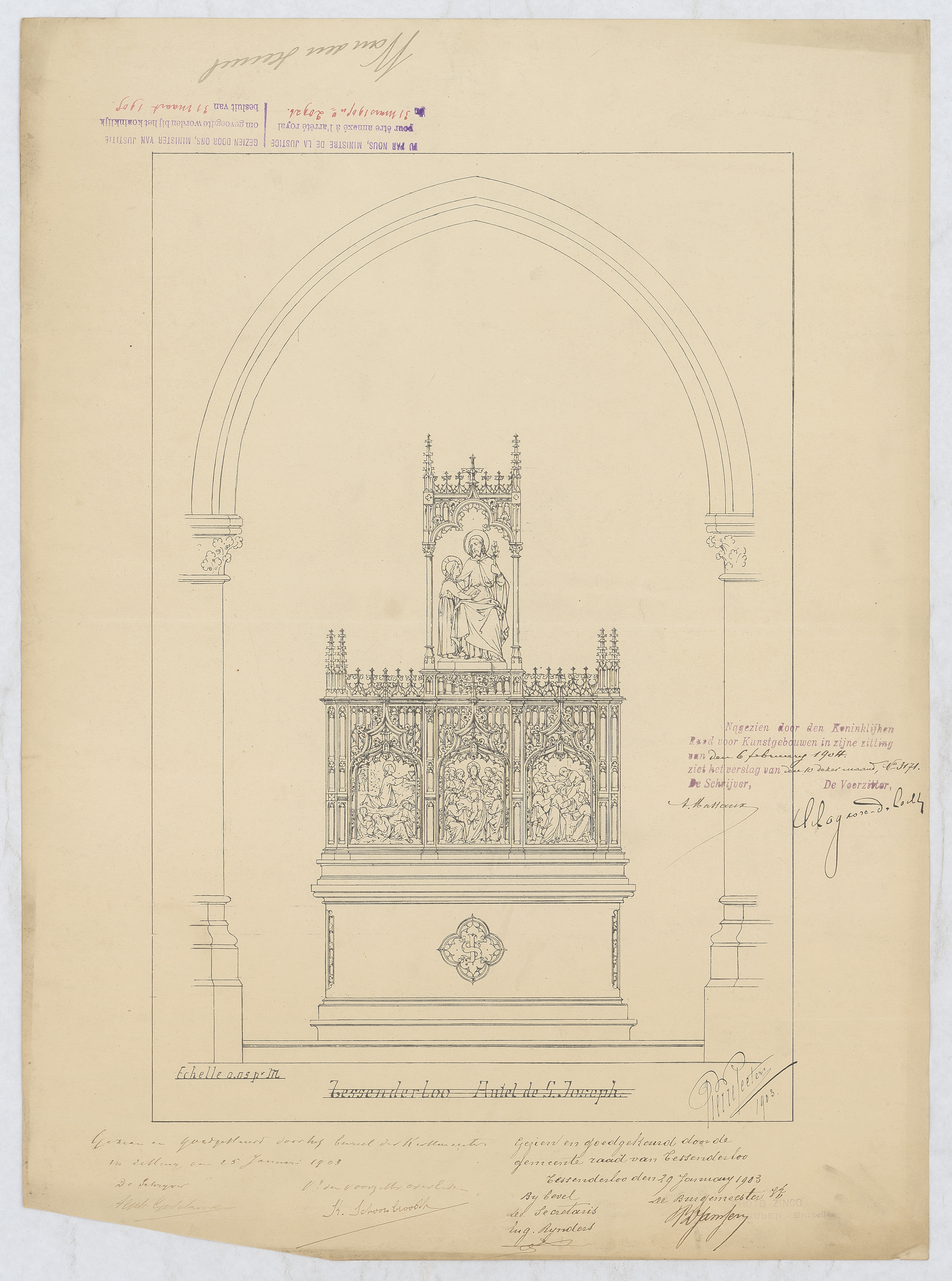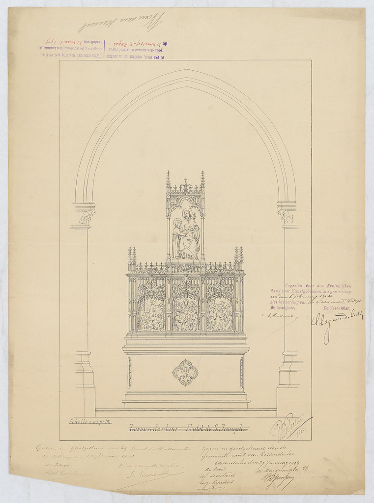 Opschrift: Tessenderloo - Autel de St. Joseph Omschrijving plan: ontwerp altaar Datum KCML: 6-2-1904 Archiefnummer: L1001