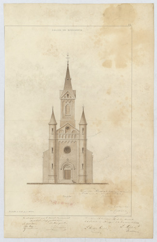 Opschrift: Église de Nederheim - Façade Omschrijving plan: opstand voorgevel Datum KCML: 06/09/1875 Archiefnummer: L1071