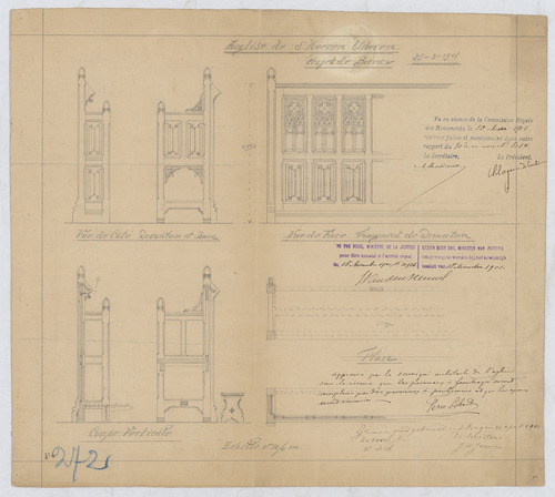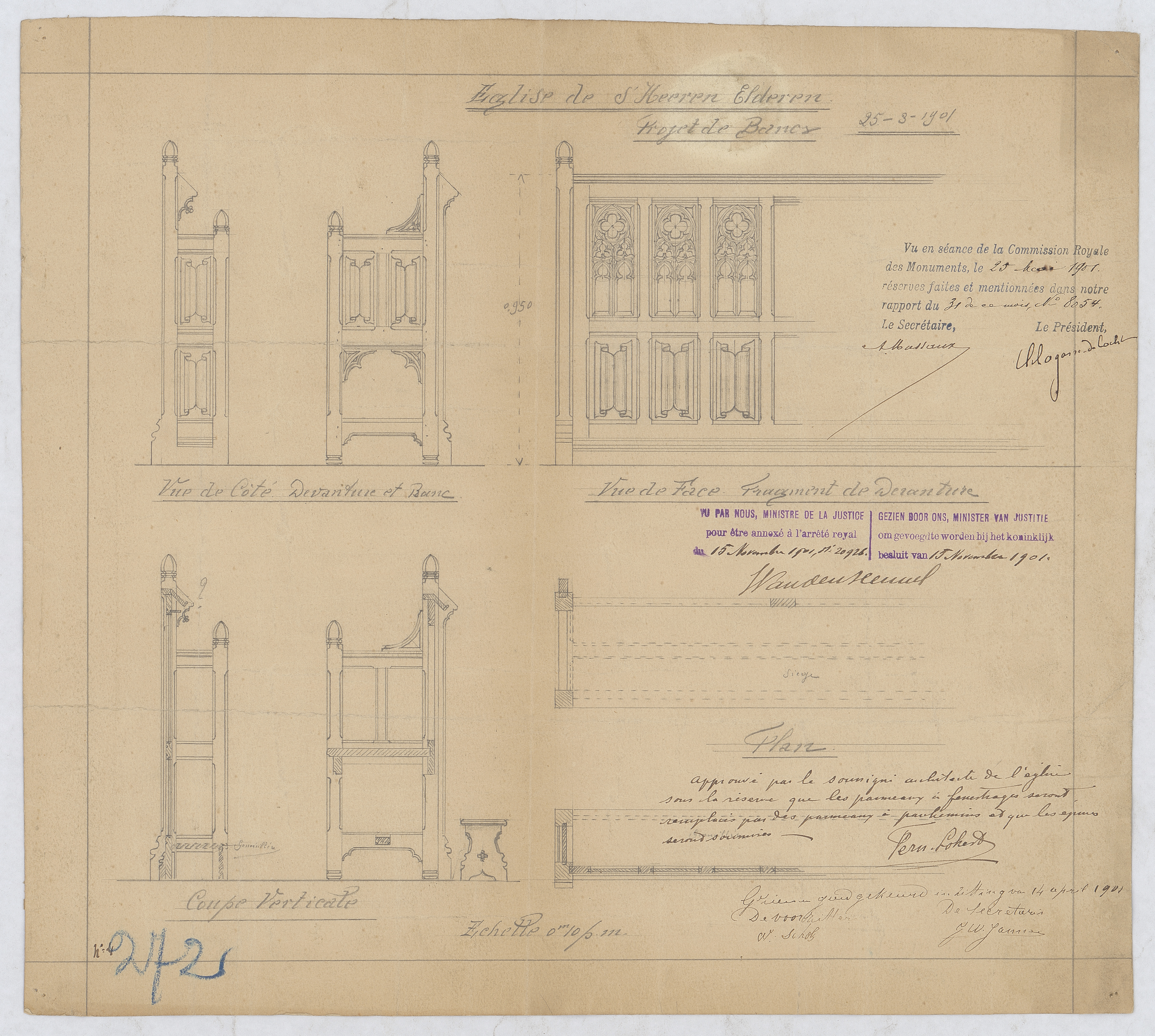 Opschrift: Église de s'Heeren Elderen Omschrijving plan: ontwerp van banken Datum KCML: 25-5-1901 Archiefnummer: L1030