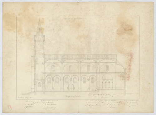 Opschrift: Église de Nederheim - Coupe longitudinale Omschrijving plan: langsdoorsnede Datum KCML: 06/09/1875 Archiefnummer: L1068