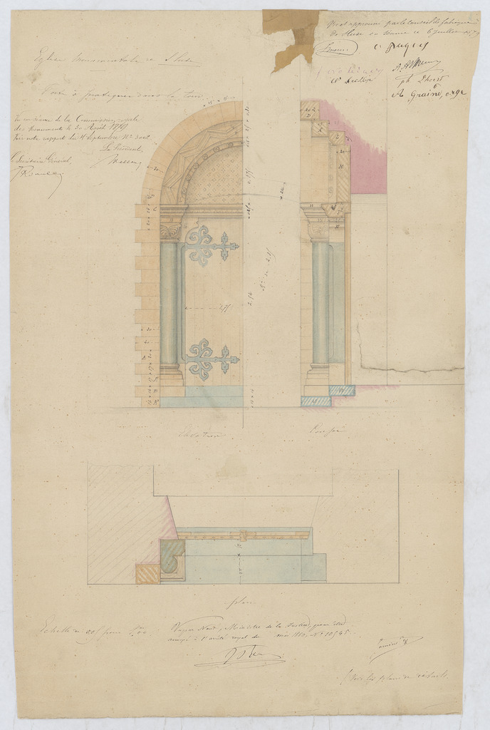Opschrift: Porte à pratiquer dans la tour Omschrijving plan: ontwerp kerkpoort Datum KCML: 30/08/1879 Archiefnummer: L1085