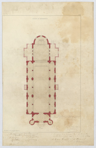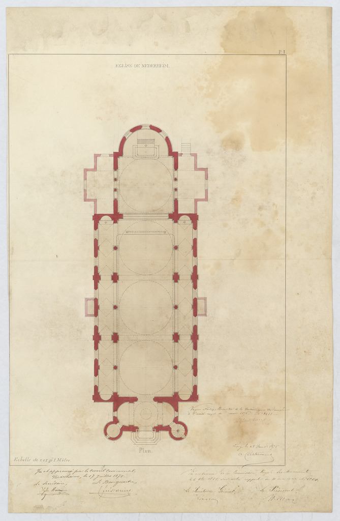 Opschrift: Église de Nederheim - Plan Omschrijving plan: plattegrond niveau 0 Datum KCML: 06/09/1875 Archiefnummer: L1067