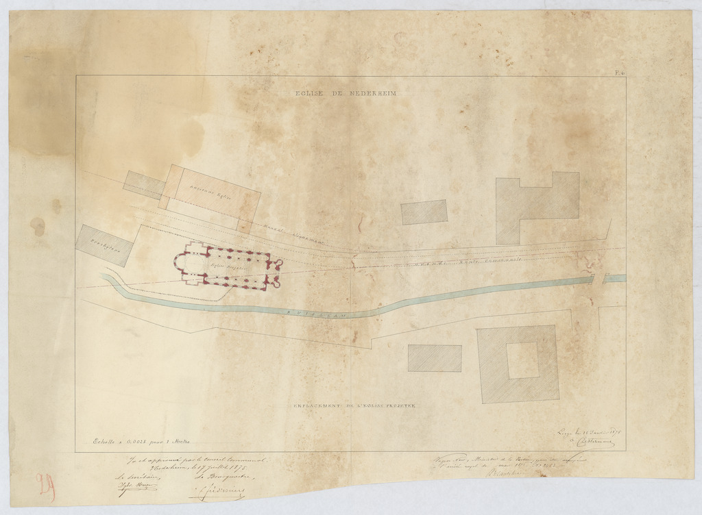 Opschrift: Église de Nederheim - Emplacement de l'église projetée Omschrijving plan: situatieplan Datum KCML: deze informatie wordt niet vermeld op het archiefstuk Archiefnummer: L1066