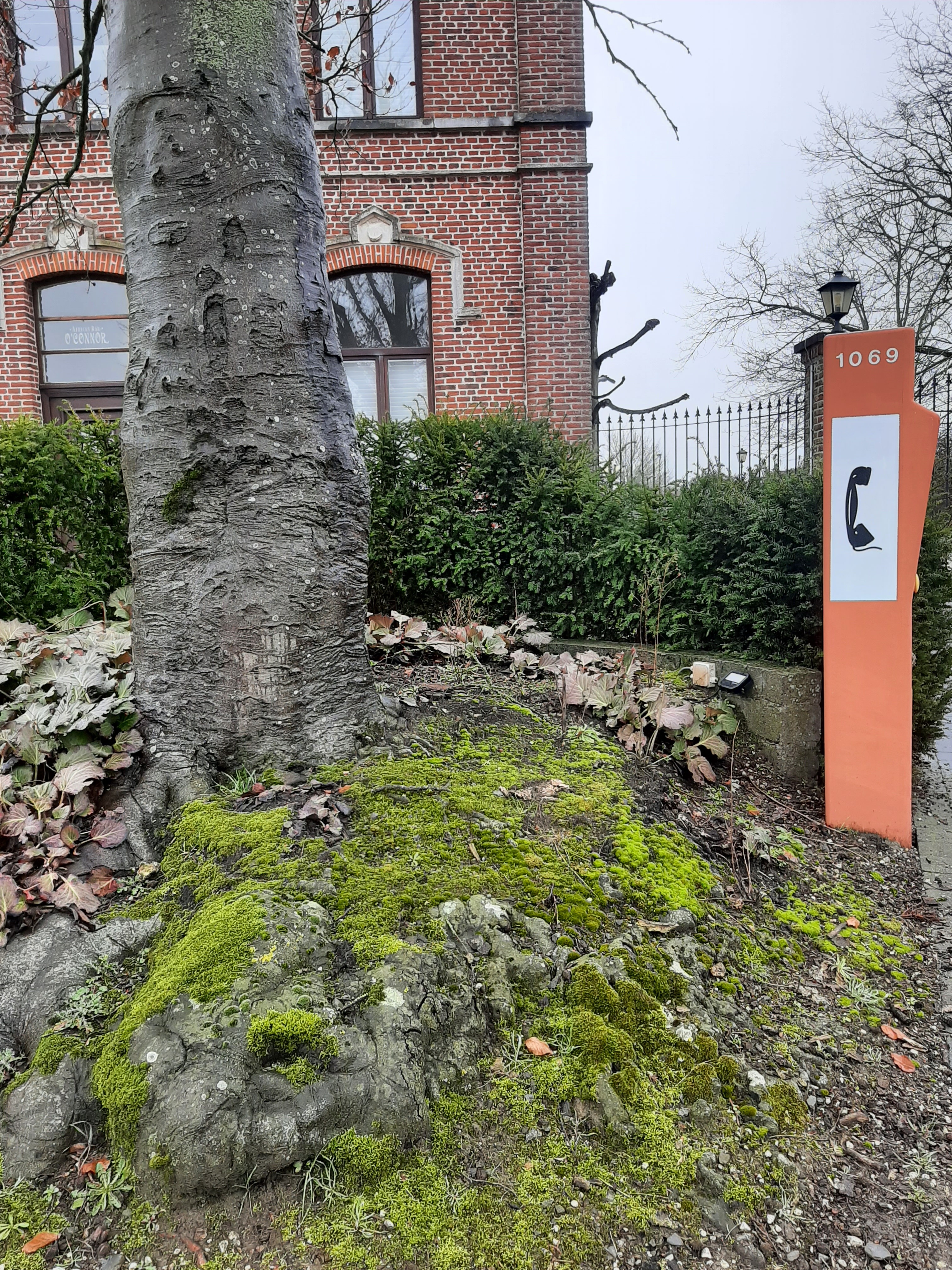 Een opgaande bruine beuk in slechte toestand. Door veelvuldige ingrepen in de wortelzone is de boom aan het aftakelen.