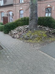 Een opgaande bruine beuk in slechte toestand. Door veelvuldige ingrepen in de wortelzone is de boom aan het aftakelen.
