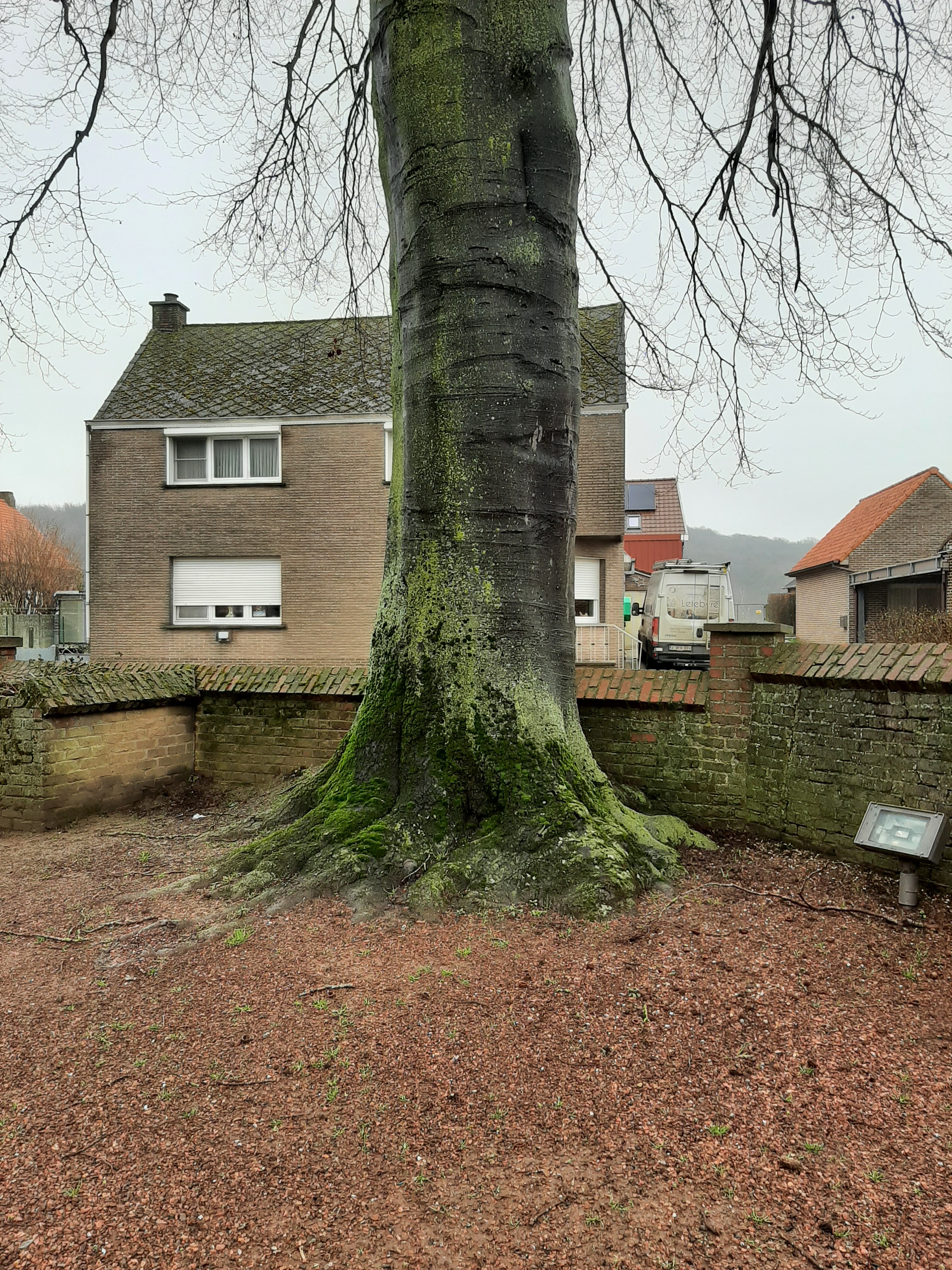 Opgaande bruine beuk als vredesboom. Zicht op de groeiplaats.