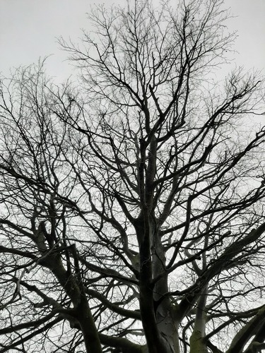 Opgaande bruine beuk als vredesboom. Zicht op de habitus.
