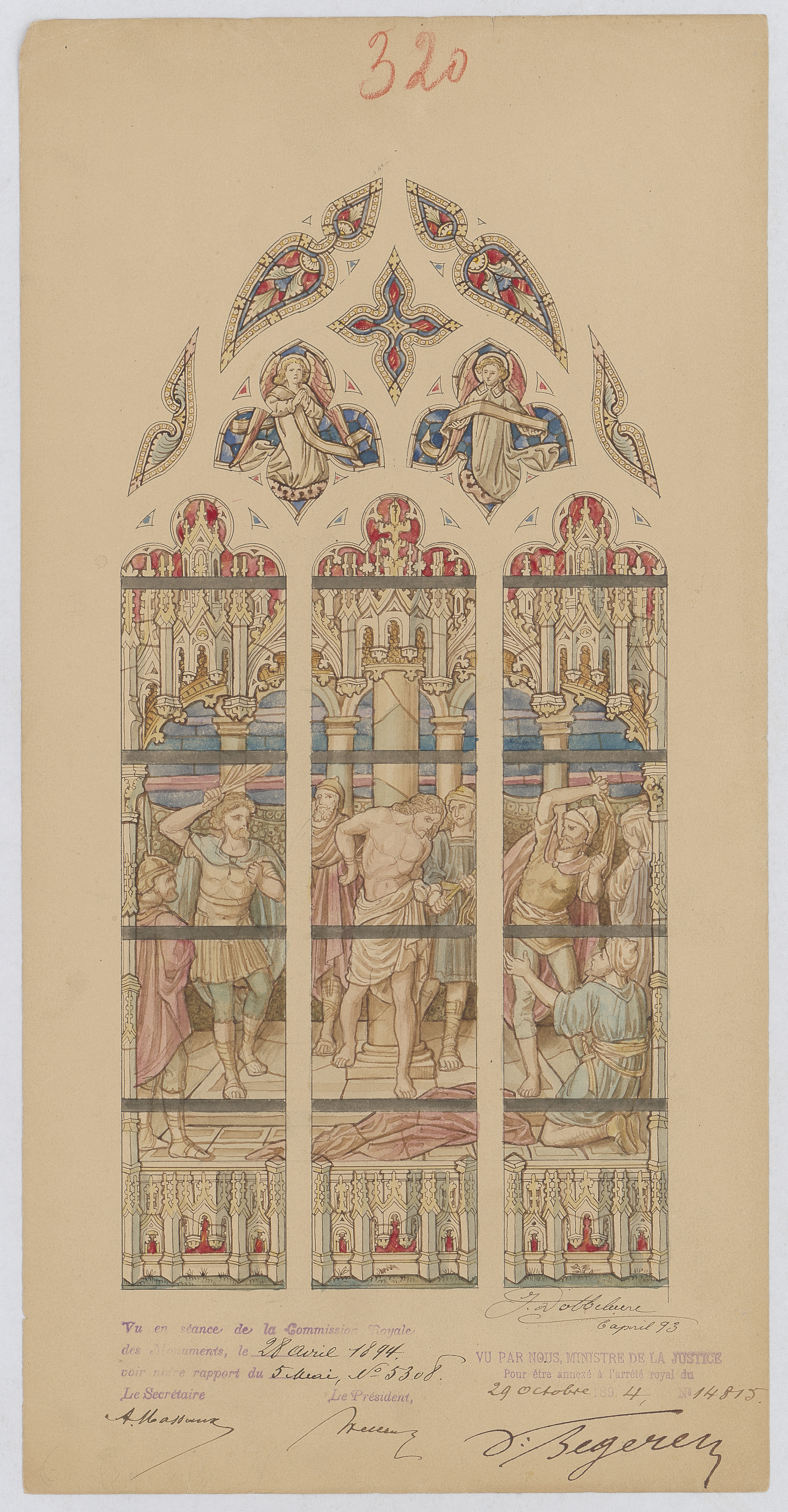 Opschrift: deze informatie wordt niet vermeld op het archiefstuk Omschrijving plan: glasraam Datum KCML: 28/04/1894 Archiefnummer: B0080