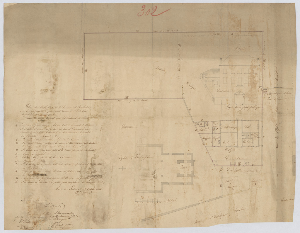 Opschrift: Plan du Presbytère de la Commune de Teralphene avec les changements à faire étant convenu avec les conseils de fabrique et Communale. Omschrijving plan: plattegrond niveau 0, opstand voorgevel Datum KCML: 28/11/1865 Archiefnummer: B0018