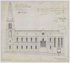Opschrift: Commune d'Huysinghen. Projet pour la construction d'une nouvelle Eglise. Omschrijving plan: opstand zijgevel 1 Datum KCML: 14/09/1895 Archiefnummer: B0091