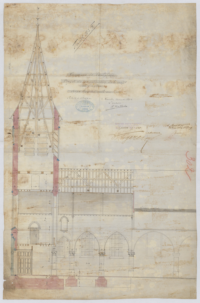 Opschrift: Commune de Teralphene. Projet de reconstruction de la moitié de l'église. Omschrijving plan: langsdoorsnede Datum KCML: 06/01/1895 Archiefnummer: B0014