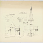 Opschrift: Commune d'Itterbeek. Restauration et agrandissement de l'église. Omschrijving plan: opstand voorgevel, dwarsdoorsnede Datum KCML: deze informatie wordt niet vermeld op het archiefstuk Archiefnummer: B0194