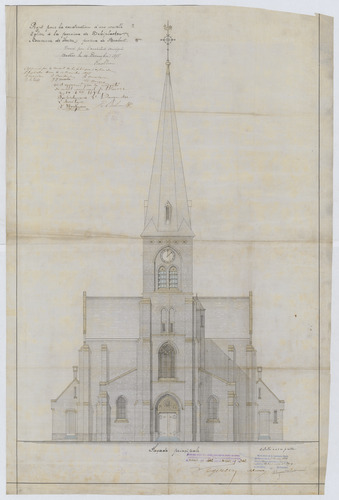 Opschrift: Project pour la construction d'une nouvelle Eglise à la paroise de Schiplaeken "Commune de Hever", province de Brabant Omschrijving plan: opstand voorgevel Datum KCML: 07/01/1899 Archiefnummer: B0126