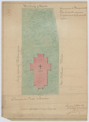 Opschrift: Commune de Becquevoort. Plan d'ensemble indiquant l'emplacement de la nouvelle église. Omschrijving plan: situatieplan Datum KCML: deze informatie wordt niet vermeld op het archiefstuk Archiefnummer: B0109