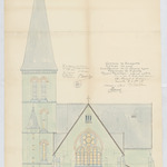 Opschrift: Commune de Tourneppe. Hameau de Loth. Construction de la nouvelle église paroissiale de Saint Joseph. Omschrijving plan: opstand O-gevel Datum KCML: 14/11/1908 Archiefnummer: B0100