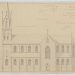 Opschrift: Projet de construction d'une église à Strombeek. Omschrijving plan: opstand zijgevel 1 Datum KCML: 13/02/1869 Archiefnummer: B0272