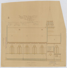 Opschrift: Province de Brabant - Commune de Schepdael. Hameau de Pede-Ste-Gertrude. Construction d'une nouvelle Eglise paroissiale. Façade "Sud". Omschrijving plan: opstand Z-gevel Datum KCML: 7-4-1906 Archiefnummer: B0200