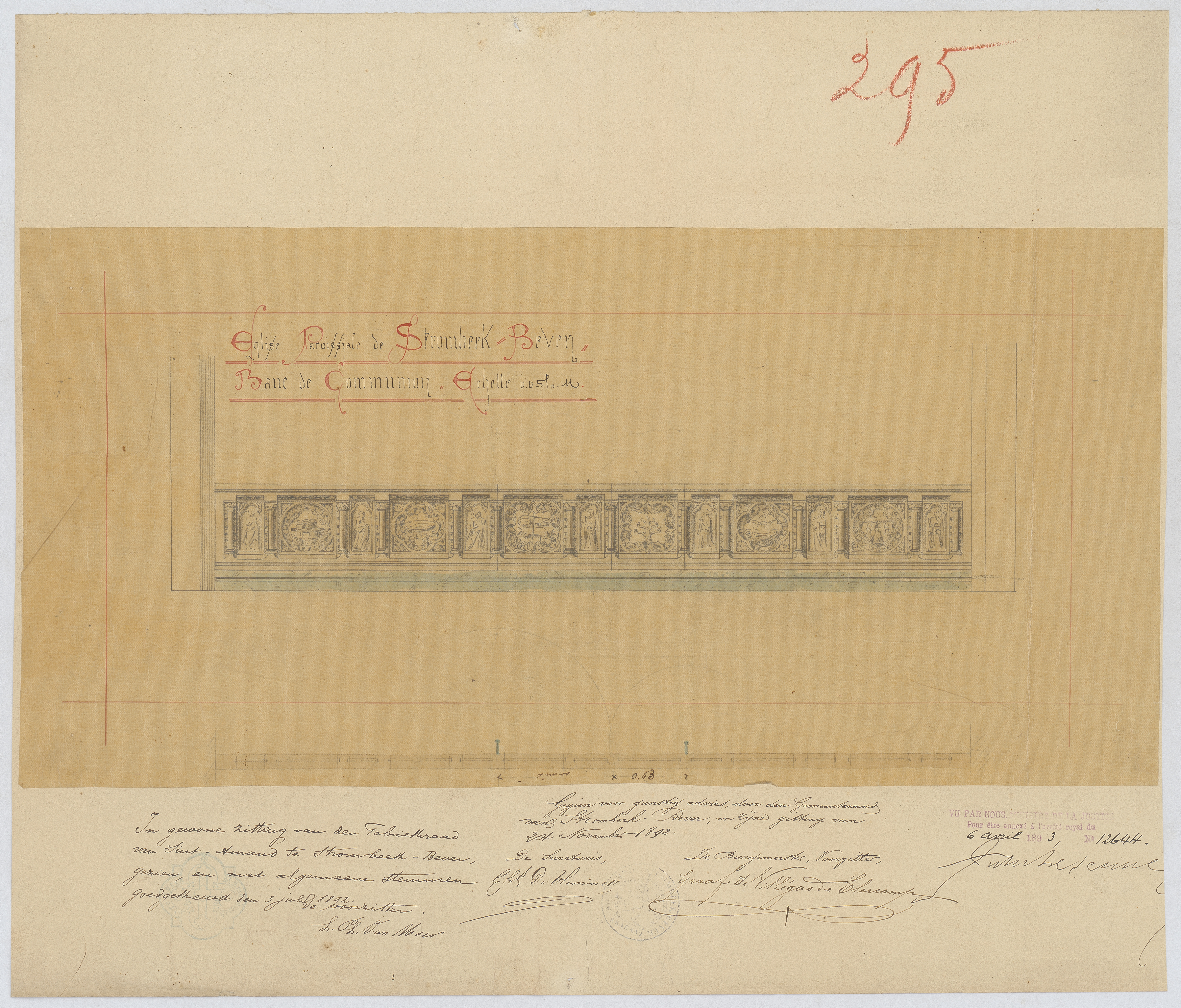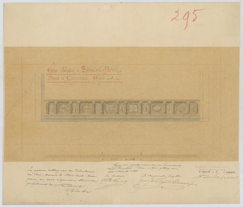 Opschrift: Eglise paroissiale de Strombeek-Bever. Banc de Communion. Omschrijving plan: aanzicht en plattegrond communiebank Datum KCML: 01/01/1893 Archiefnummer: B0277