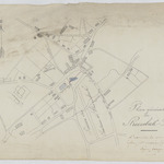 Opschrift: Plan général de Strombeek-Bever. L'axe de la nouvelle église est indiqué par une ligne rouge. Omschrijving plan: situatieplan Datum KCML: deze informatie wordt niet vermeld op het archiefstuk Archiefnummer: B0287