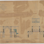 Opschrift: Eglise Notre Dame de Hérent. Projet de restauration. Omschrijving plan: dwarsdoorsnede, dwarsdoorsnede naar portaal, dwarsdoorsnede naar koor Datum KCML: 02/05/1896 Archiefnummer: B0368