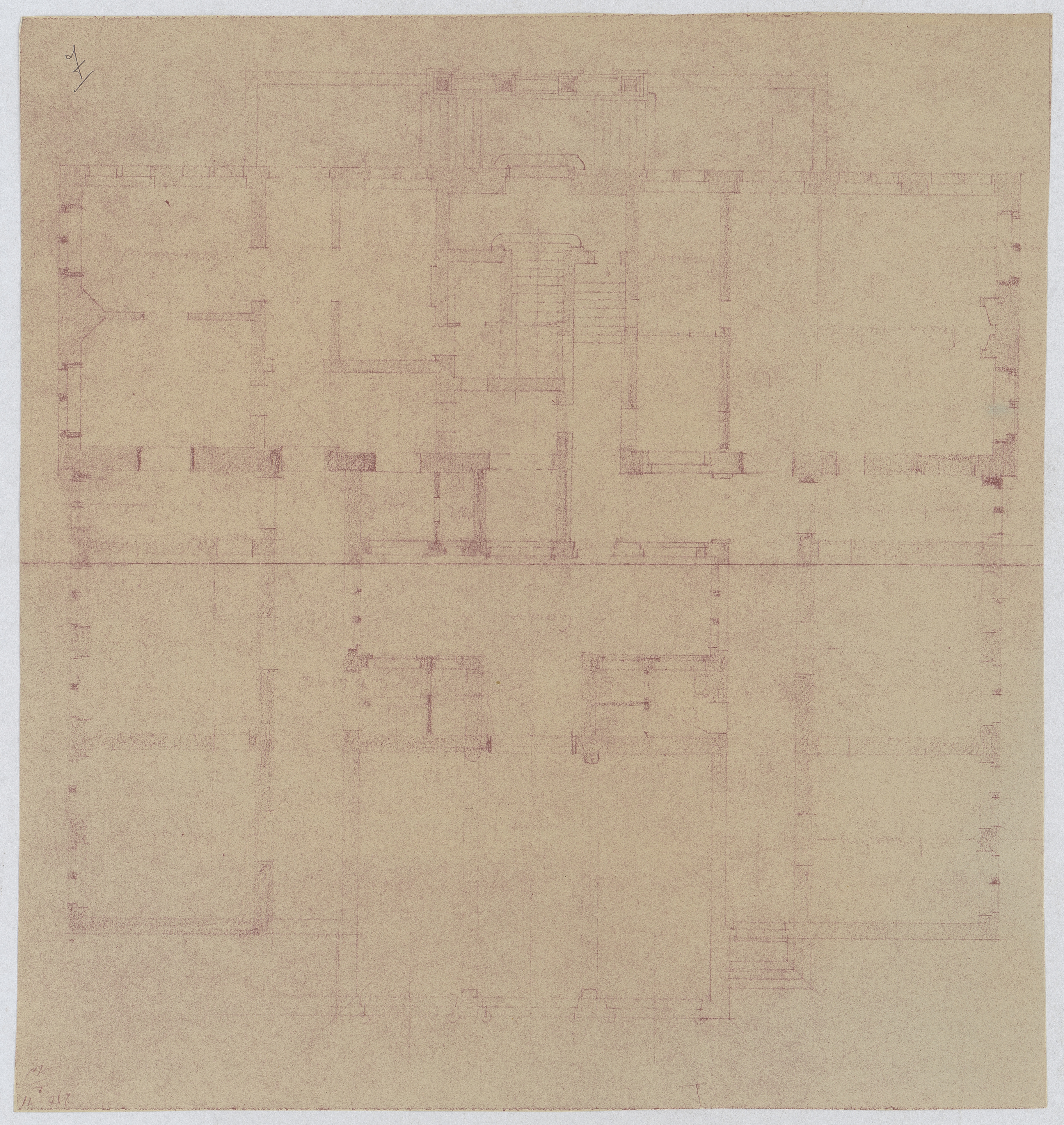 Drager: papier Techniek: kalkafdruk Afmetingen (h x b in mm): 403 x 438 mm Schaal: 1/100